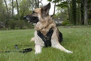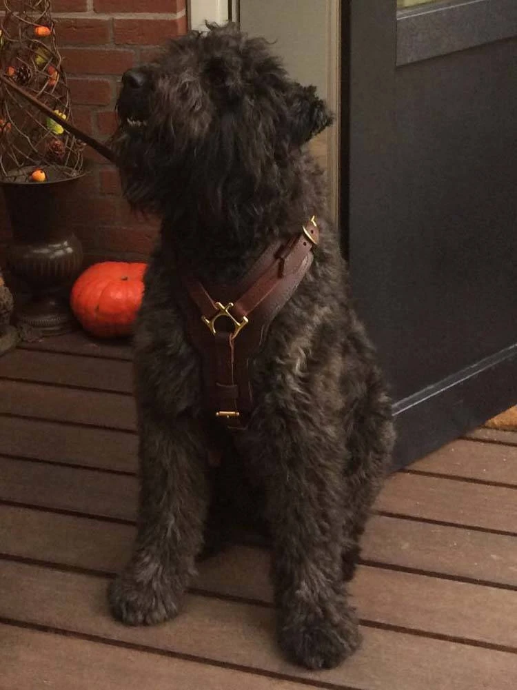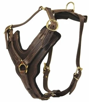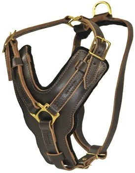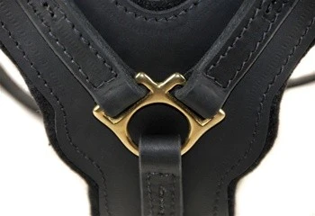 Een stoer en zeer hoogwaardig leren hondentuig voor de grotere hondenrassen. De borstplaat is in de vorm van een Y waardoor de druk op de keel wordt weggeleid naar de schouders. De borstplaat is gemaakt van dik leer dat geschikt is voor zware belasting en is gevoerd met dik vilt om schokken op te vangen. De riemen zijn bevestigd aan de borstplaat met stiksels, messing klinknagels en lederen lussen.
