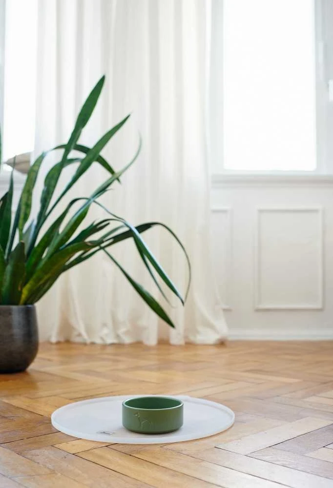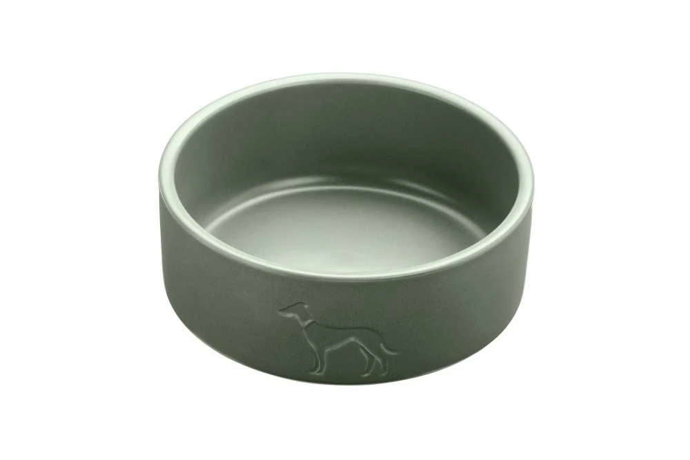 Deze stijlvolle keramiek bak wordt gekenmerkt door tijdloze rechte lijnen en doordachte functionaliteit. Vanuit de aangenaam zware voer- of drinkbak genieten viervoeters met plezier van hun dagelijkse voerrantsoen en vers water. De natuurlijke kleuren en de klassieke vorm met een nobel hondensilhouet geven een gevoel van originaliteit en duurzaamheid. Dankzij de rondom lopende siliconen rand op de bodem en het relatief hoge gewicht staat de kom bijzonder stevig en wordt hij ook graag door gevoelige honden geaccepteerd.