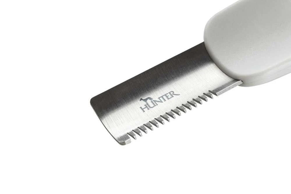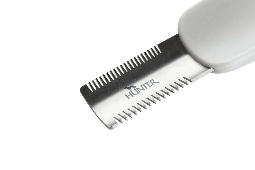 Het maakt niet uit of de vacht lang, medium of kort is: met het gebogen trimmes Spa wordt losse topvacht tijdens het trimmen grondig en effectief verwijderd. Zelfs moeilijk bereikbare plaatsen zijn gemakkelijk te bereiken – een groot voordeel bij regelmatig gebruik. Het lemmet van hoogwaardig roestvrij staal garandeert optimaal succes en de grootst mogelijke hygiëne, en de ergonomisch gevormde handgreep zorgt voor een comfortabele en veilige hantering.