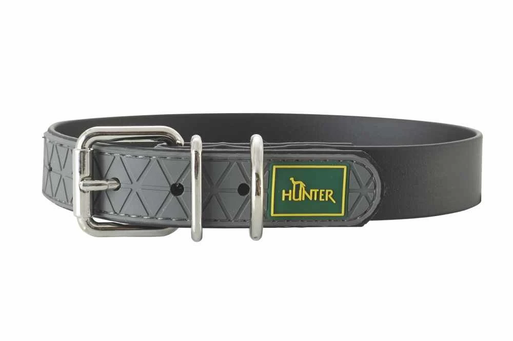 Deze strakke halsband is gemaakt van stevig kunststof en is door de strakke vorm en de grote keuze aan kleuren geschikt voor elke smaak. Het onderhoudsvriendelijke materiaal maakt deze mooie halsband absoluut geschikt voor dagelijks gebruik. Het speciaal door Hunter ontwikkelde kunststof is bestand tegen scheuren, duurzaam en waterbestendig. U kunt de halsband gewoon met water afspoelen als de halsband vies is geworden.
