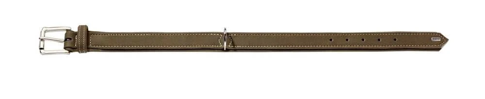 Een zachte en soepele leren halsband, die is gemaakt van zacht nubuckleer. De halsband is gevoerd, zodat de halsband bijzonder comfortabel is voor de hond. De contrasterende stiksels zijn een fraai detail.