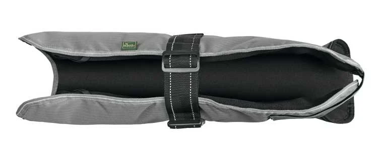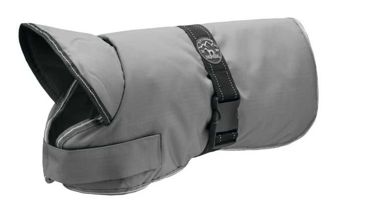 Deze comfortabele grijze hondenjas biedt de hond effectieve bescherming tegen de wind en de kou. De jas is wind- en waterafstotend. De hondenjas is gevoerd met zacht fleece dat de hond aangenaam warm houdt. Uw hond blijft overal warm, zelfs rond de nek, omdat deze hondenjassen een bijzonder hoge kraag hebben. De nek van de hondenjas is in de breedte verstelbaar door middel van een klittenbandsluiting en heeft een opening voor de D-ring van een halsband.