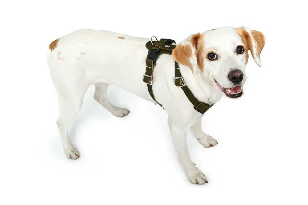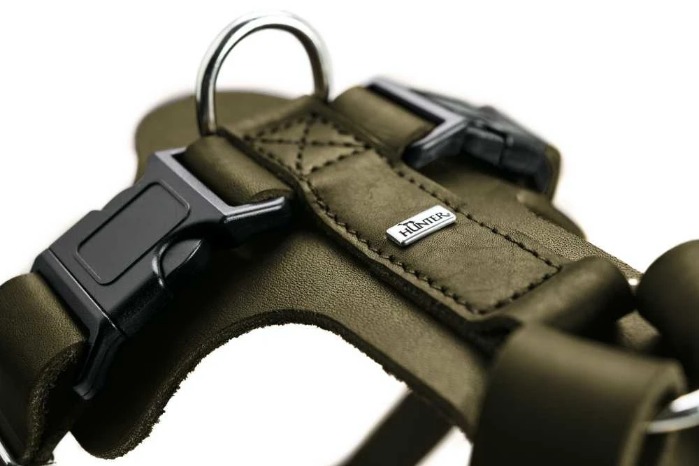 Dit is een comfortabel en functioneel groen hondentuig dat is gemaakt van zacht koeienleer. Het Y tuig heeft een geweldige pasvorm, Het hondentuig biedt uw hond veel vrijheid in de oksels door de verlengde borstriem. U kunt het tuig op vijf plaatsen verstellen.