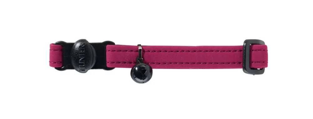 Dit is een effen framboos kattenhalsband die is gemaakt van zacht onderhoudsarm kunstleer. De halsband is voorzien van een veiligheidssluiting. Dit zorgt ervoor dat de sluiting openspringt als de kat ergens aan blijft haken. De halsband is traploos verstelbaar en voorzien van een belletje.