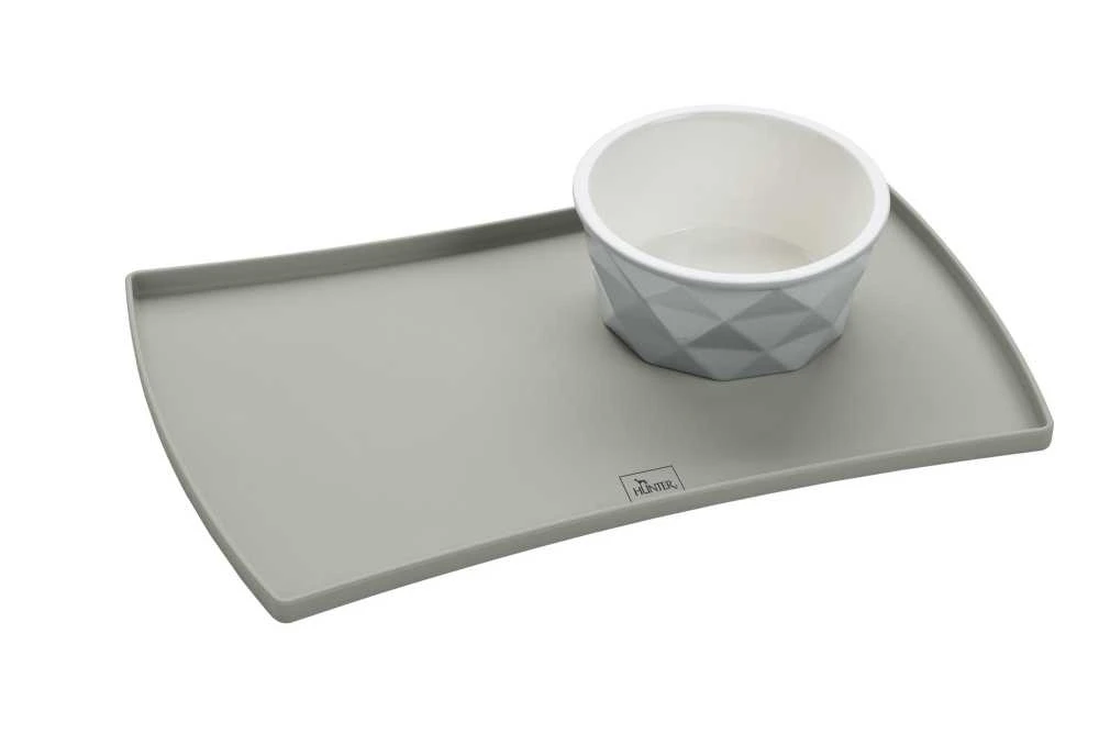De anti-slip onderlegger zal op zijn plaats op de vloer liggen. Het voorkomt niet alleen dat nat en droog voer aan de vloer blijft kleven, het voorkomt ook dat de voerbak of waterbak kantelt of verschuift. De hoge rand van de onderlegger vangt niet alleen voedsel op, maar houdt ook water vast dat uit de kom is gemorst.