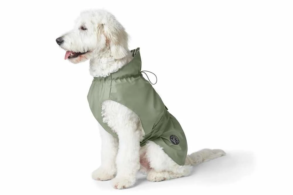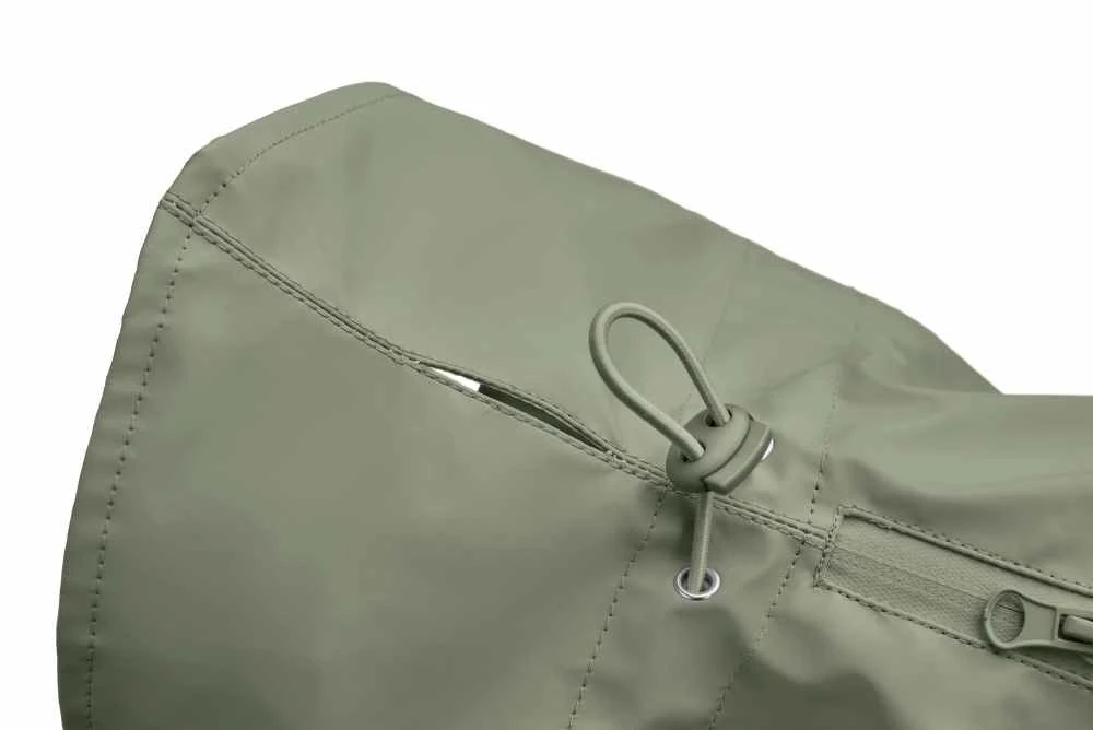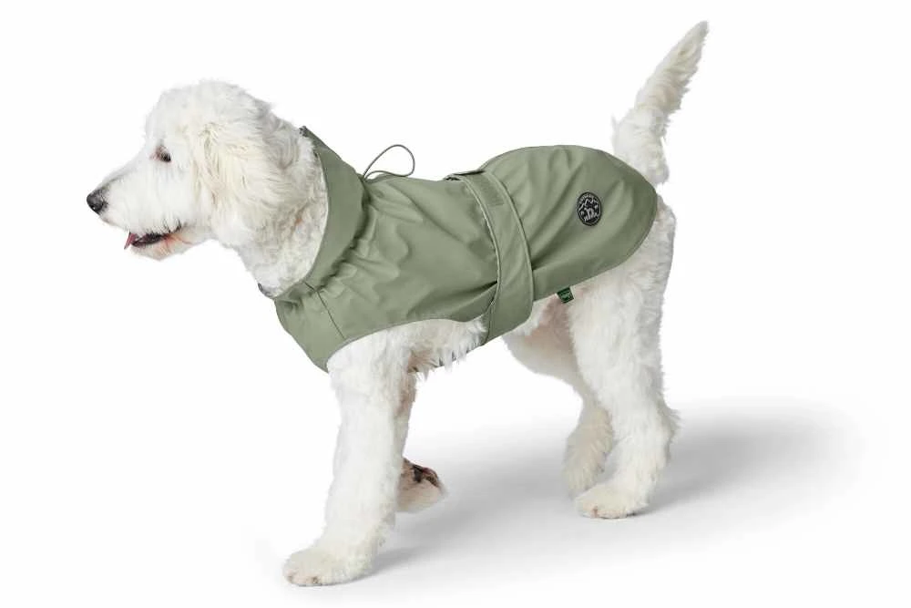 De jas is gemakkelijk te onderhouden: vuil kan eenvoudig worden afgeveegd met een zachte, vochtige doek. Als alternatief kan de wasmachine op 30 °C worden gebruikt om de kleuren weer volledig te laten schitteren. De regenjas is verder lichtgewicht en wind- en waterafstotend. Praktisch is de opening voor het bevestigen van een riem aan de halsband. Nieuw is de waterdichte ritssluiting op de rug zodat ook een tuigje aan de riem vastgemaakt kan worden.