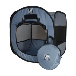 De nieuw ontworpen reisbench voor de hond van K9 Sport Sack is perfect geschikt voor buitenavonturen en reizen! Hij klapt binnen enkele seconden in en uit en past gemakkelijk in elke rugzak of koffer. Nieuw is dat 4 aluminium haringen worden meegeleverd om de bench in de grond te bevestigen! Op het strand, in de bergen of rondom het huis, deze bench biedt uw hond een plek om te rusten. Deze tent biedt het comfort van een kennel, zonder het gedoe van een groot, omvangrijk en zwaar gevaarte.