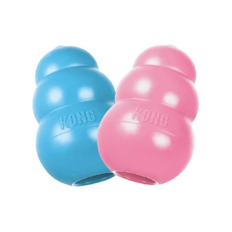 Deze variant op de beroemde KONG® CLASSIC is aangepast voor de melktanden van een puppy. Dit speelgoed is van zacht massief rubber. Door zijn speciale vorm springt hij onregelmatig rond en biedt de hond dan ook veel speelplezier. Tijdens het spelen wordt het tandvlees gemasseerd. Dankzij de opening kan het hondenspeelgoed ook worden gevuld met puppy brokken.