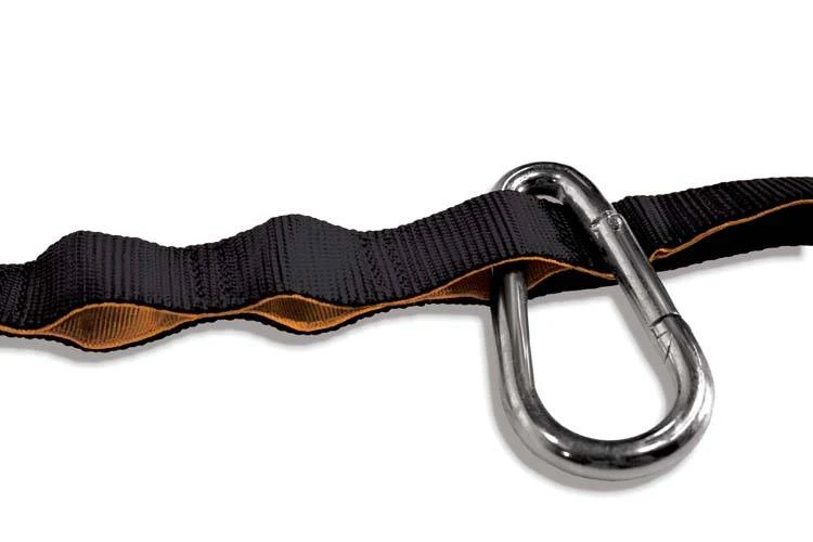 U spant de flexibele lijn tussen twee vaste punten en maakt deze vast met de karabijnhaken, zodat de lijn gespannen staat. Vervolgens klikt u de bijgeleverde hondenriem simpel en snel vast met de musketonhaak.