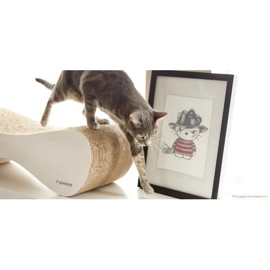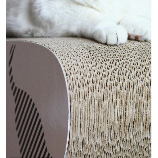 Een modern en fraai design wit krabmeubel, dat volledig met de hand wordt gemaakt. Het is gemaakt van golfkarton, waar katten helemaal dol op zijn. Het prachtige design maakt het meubel tot een heuse blikvanger in elk interieur.
