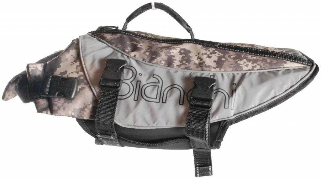 Onder de kin is er een extra drijvende band om de kop van de hond goed boven water te houden.
