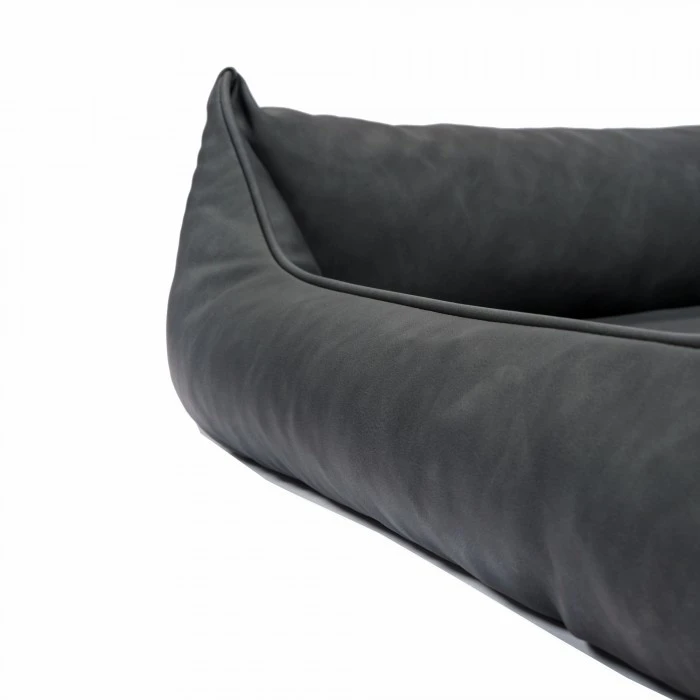Dit is een moderne en trendy hondenmand die fraai is uitgevoerd met een uitneembaar los kussen. Het geheel is uitgevoerd in een hoge kwaliteit kunstleer. De randen zijn stevig gevuld en deze zijn zeer comfortabel voor de hond. Zij geven de juiste ondersteuning aan uw hond voor de rug en de kop. De hoes is wel afritsbaar, maar niet wasbaar.